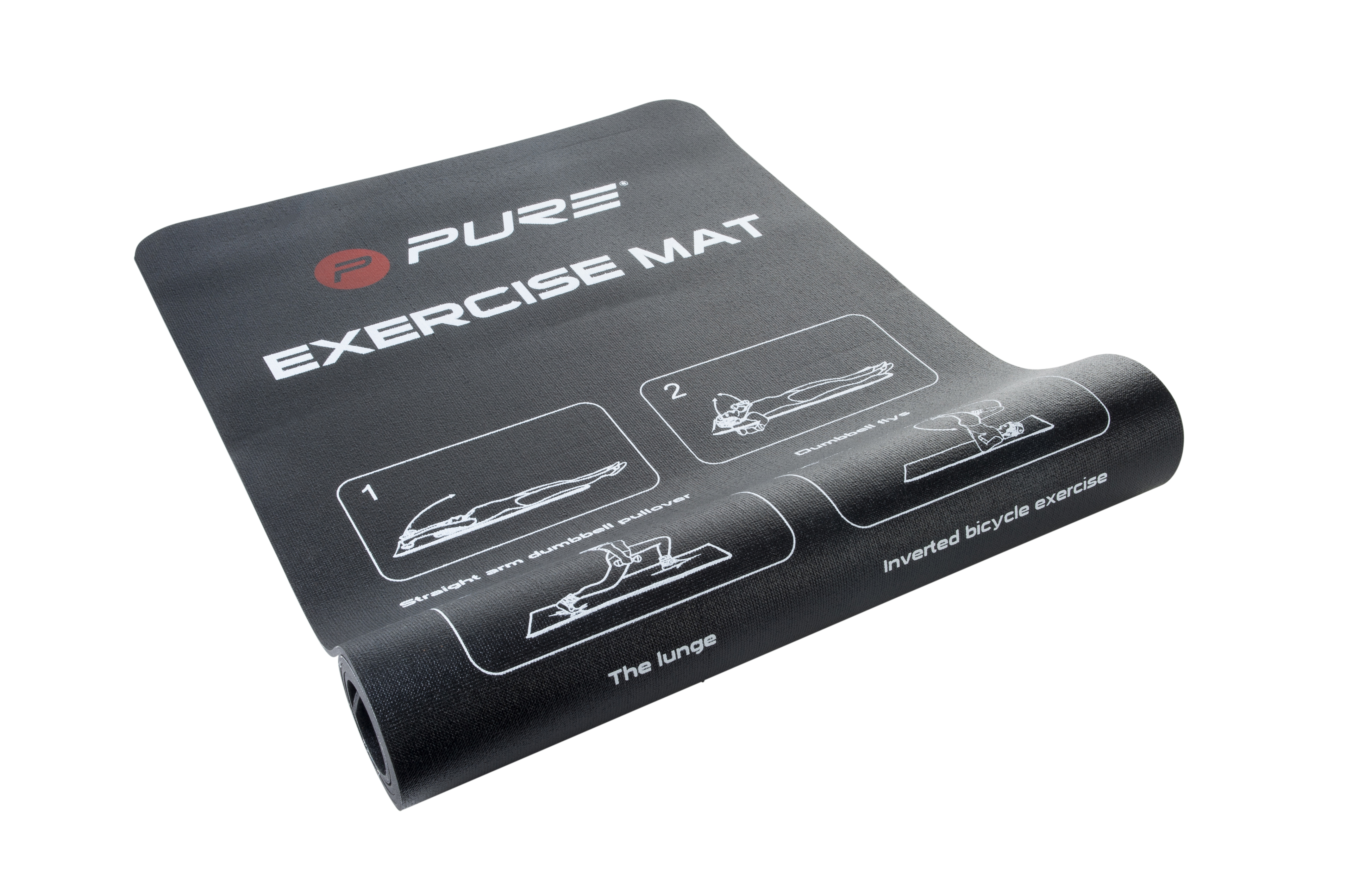 Sort træningsmåtte med 12 træningsillustrationer. Ftalatfri med skridsikker overflade. Let at rengøre. Mål 1820x610x4 mm. Vægt 1050 gram.