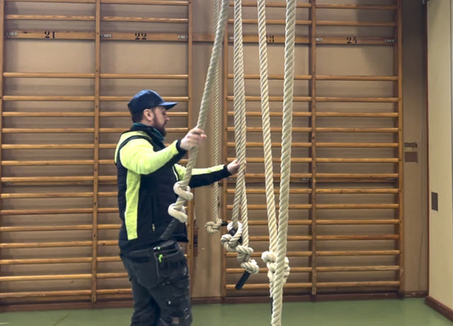 Tarkastetaan, että köydet pysyvät paikoillaan, kun ne vedetään ulos. Varmistetaan että ne ovat tukevasti kiinni sekä tarkastetaan, ettei köysissä ole solmuja.