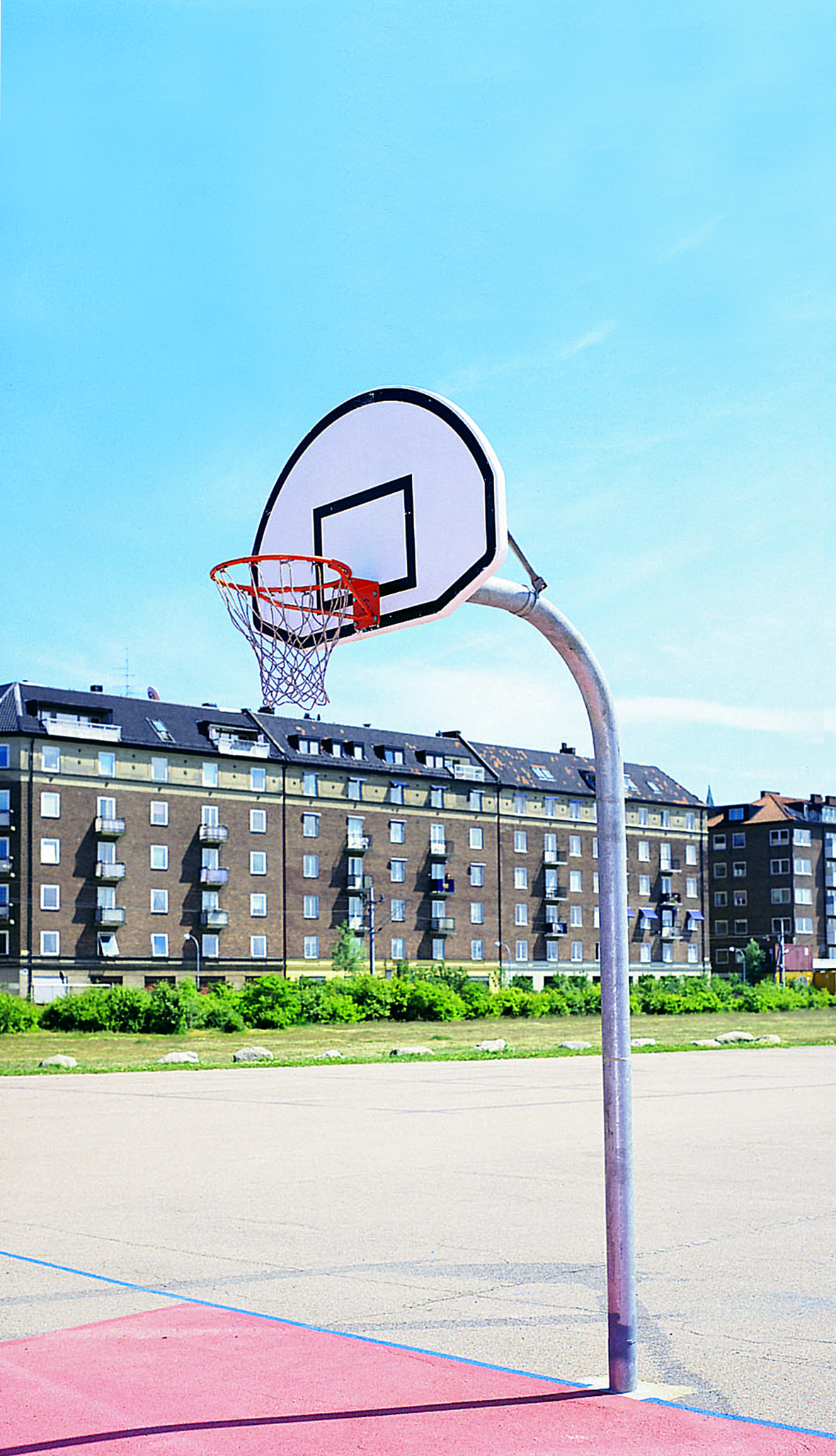 Toimitus täydellisenä kuumasinkityllä pylväällä, maaholkilla, teräksisellä korilevyllä, vahvalla renkaalla ja koriverkolla. Pylväs 114x4000mm, maaholkki 800mm, korilevy 1350x890mm.