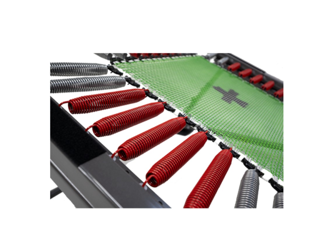 Harjoitustrampetti tukevalla rungolla ja korkealaatuisilla ponnistusominaisuuksilla. Pehmeämpien erikoisjousien ansiosta malli soveltuu erityisesti vähemmän kokeneemmille uusien taitojen opetteluun. Rungon etuosassa yksinkertainen korkeussäätö ja selkeät laserleikatut merkinnät. 36 teräsjousta, siirtopyörät, lattiansuojat jaloissa sekä jousien suojapehmusteet. Vihreä 60x60 cm 13 mm nylon-punoksesta valmistettu hyppyverkko. Korkeudensäädöt: 60, 70, 75 ja 80 cm. Ikäluokkasuositus: 12 vuotiaat ja vanhemmat.