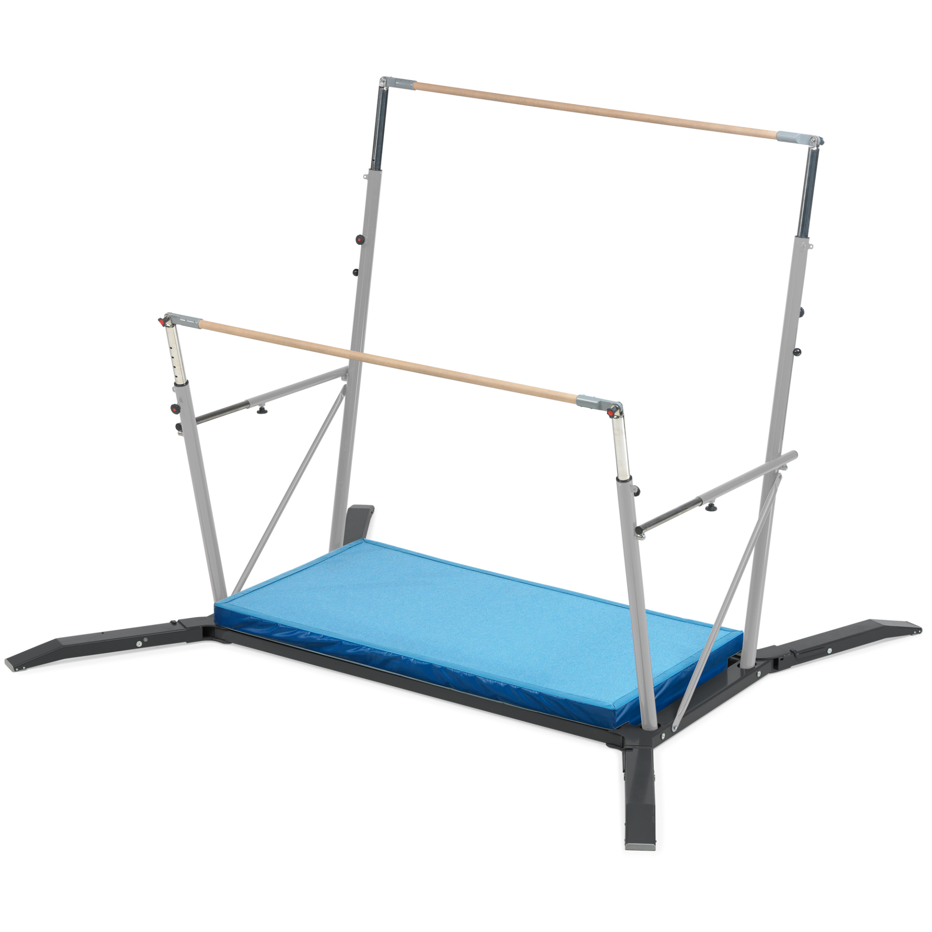 Iskuja vaimentava alastulomatto, jonka vaahtomuovikerrosten välissä erikoisvalmisteista ristikkopolyesterimateriaalia. Vaahtomuoviydin kehystetty vakauttavalla reunuksella, joka takaa tukevan alastulon ehkäisee maton leviämistä sivuttaissuunnassa. Joka sivulla patentoidut kantokahvat ja ilmanottoaukot. Pohjassa liukuesteverkko ja reunukset kestävää PVC-kangasta. Pinta miellyttävää vaaleansinistä neulahuopaa. Soveltuu vapaasti seisoville eritasonojapuille ”Club” (595043). Koko 225 x 85 x 20 cm. Lovetettu telineen runkoon sopivaksi.