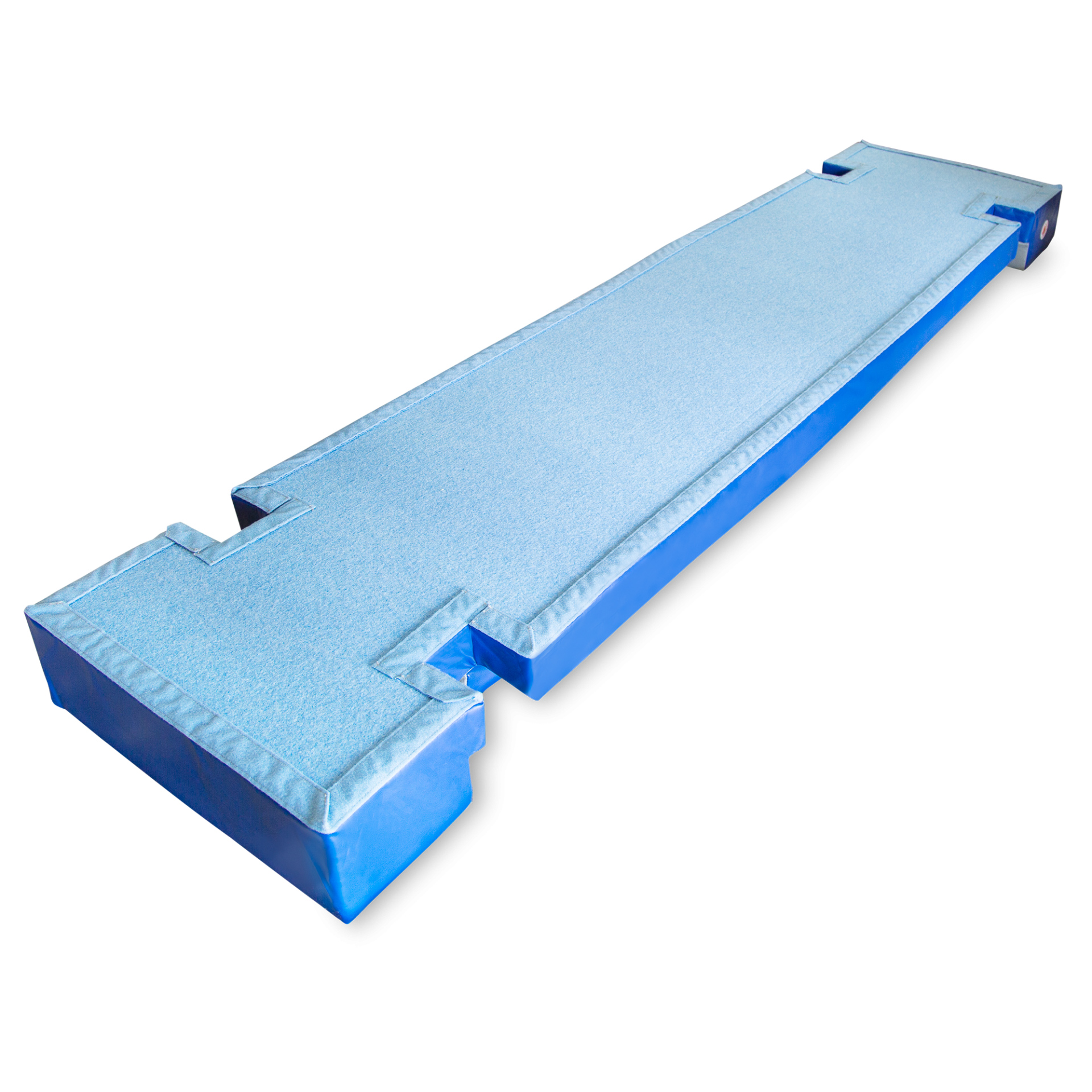 Iskuja vaimentava alastulomatto, jonka vaahtomuovikerrosten välissä erikoisvalmisteista ristikkopolyesterimateriaalia. Vaahtomuoviydin kehystetty vakauttavalla reunuksella, joka takaa tukevan alastulon ehkäisee maton leviämistä sivuttaissuunnassa. Joka sivulla patentoidut kantokahvat ja ilmanottoaukot. Pohjassa liukuesteverkko ja reunukset kestävää PVC-kangasta. Pinta miellyttävää vaaleansinistä neulahuopaa. Soveltuu kilpanojapuille ”Melbourne” (300703). FIG-hyväksytty. Koko 300 x 70 x 20 cm. Lovetettu telineen runkoon sopivaksi.