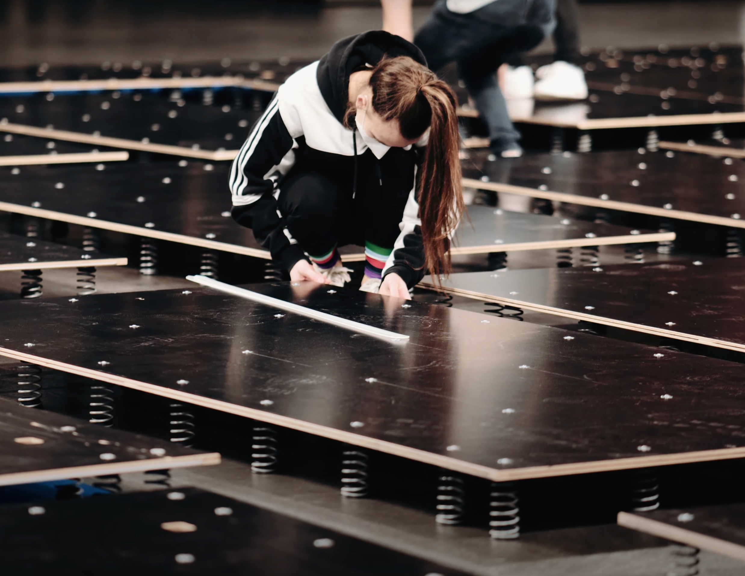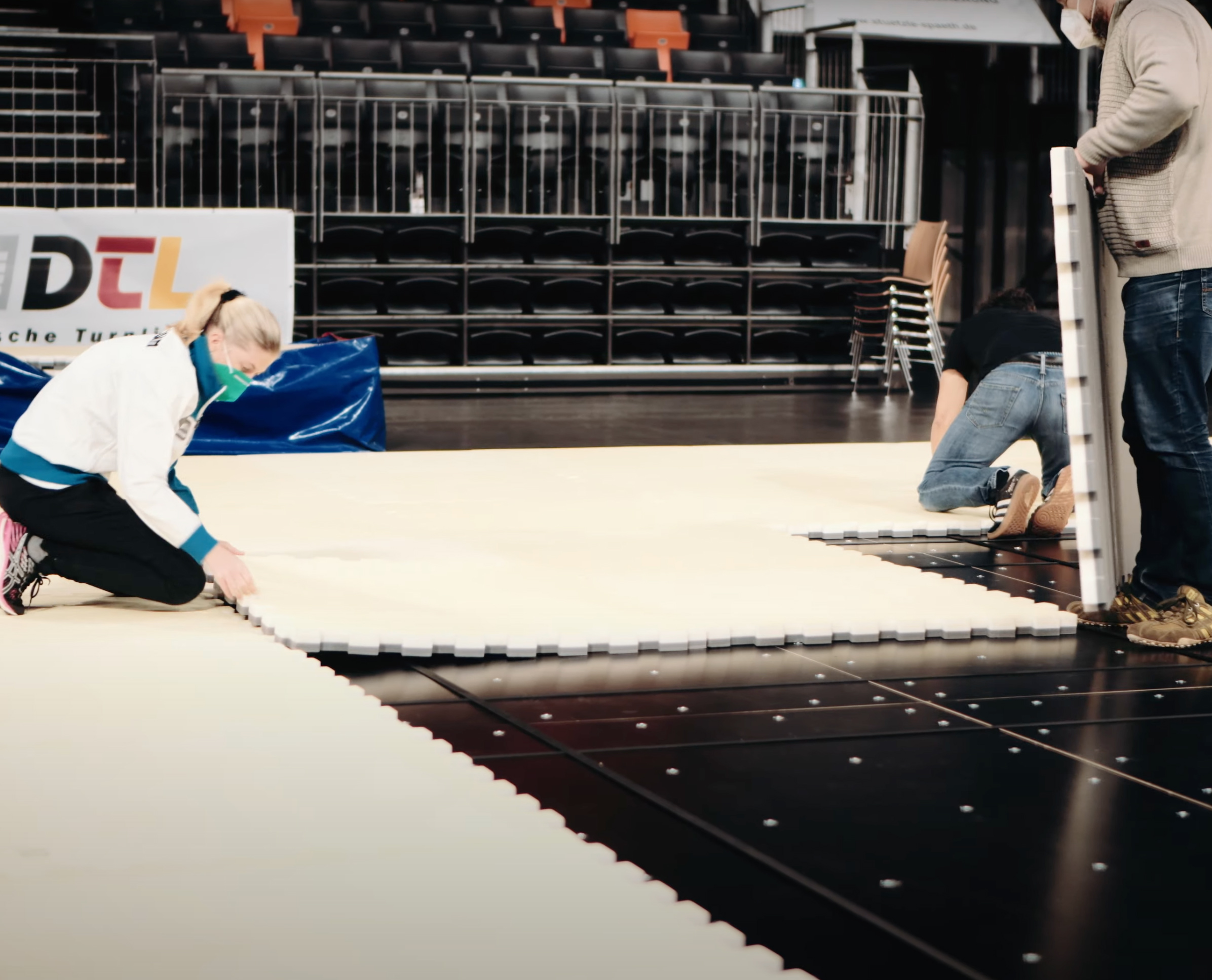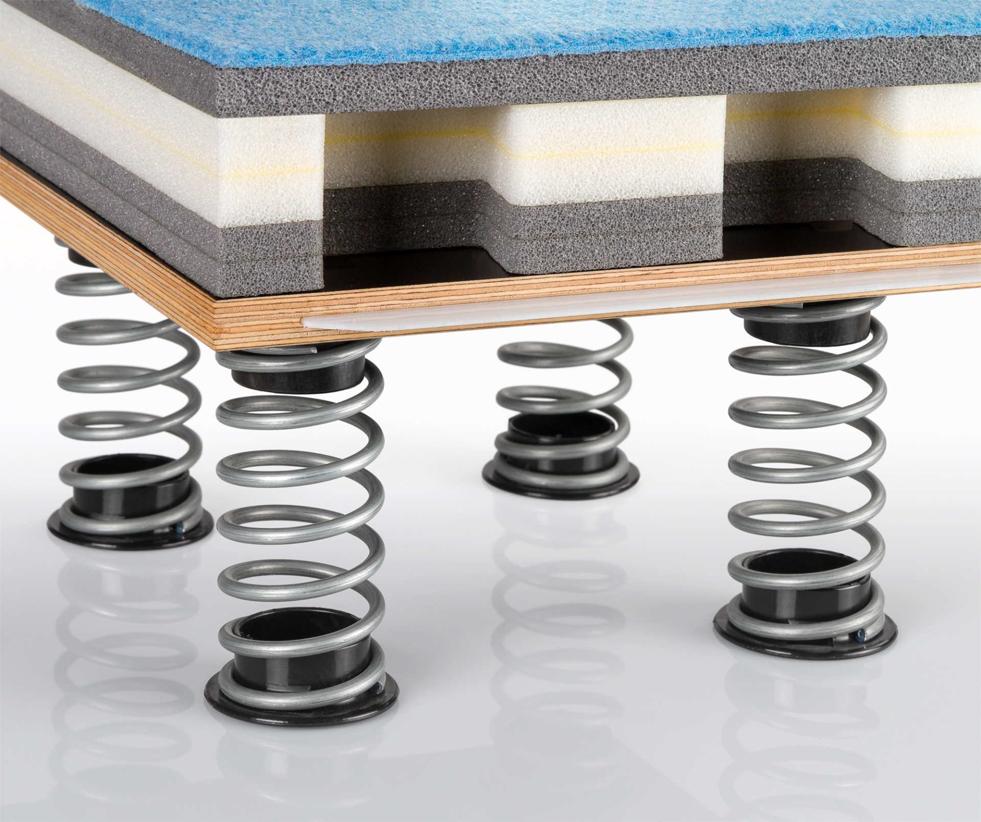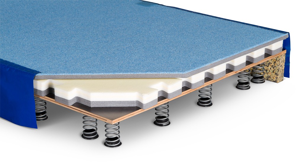 Kansainvälisen kilpailutason vaatimukset täyttävä korkealaatuinen voimistelukanveesi iskuja vaimentavalla jousijärjestelmällä. Pohjarakenne koostuu 15 mm paksuista vesivanerielementeistä, joihin on kiinnitetty korkealaatuiset teräsjouset: 5 kpl 120x240 cm, 20 kpl 100x240 cm sekä 4 kpl 100x100 cm. Joustolevyjen päällä 196 kpl 50 mm paksuja vaahtomuovilevyjä, jotka kiinnitetään toisiinsa palapeliliitoksin. Kanveesin pinnassa 7 kpl 20 mm paksuja 14x2 m neulahuopaisia rullamattoja, jotka kiinnitetään toisiinsa 150 mm velcro-nauhalla. Sisältää 4 kpl valkoisia 12x12 m suoritusalueen merkintänauhoja. Kokonaispinta-ala 14x14 m, korkeus 20 cm. FIG-hyväksytty. Huom. Jouset kiinnitettävä levyihin käsin.