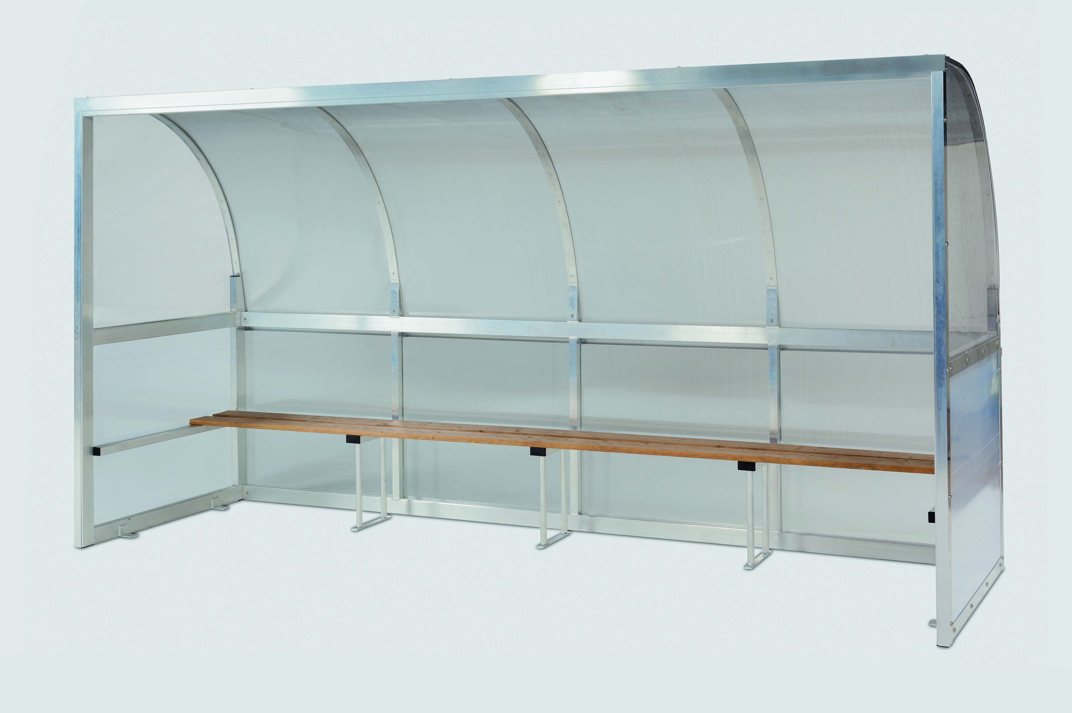 1-rivinen pelaaja-aitio, jossa on tilaa 12-13 hengelle. Sivulasit kirkasta polykarbonaattia. Takaseinä UV-suojattua kennomuovia. Toimitetaan osina.