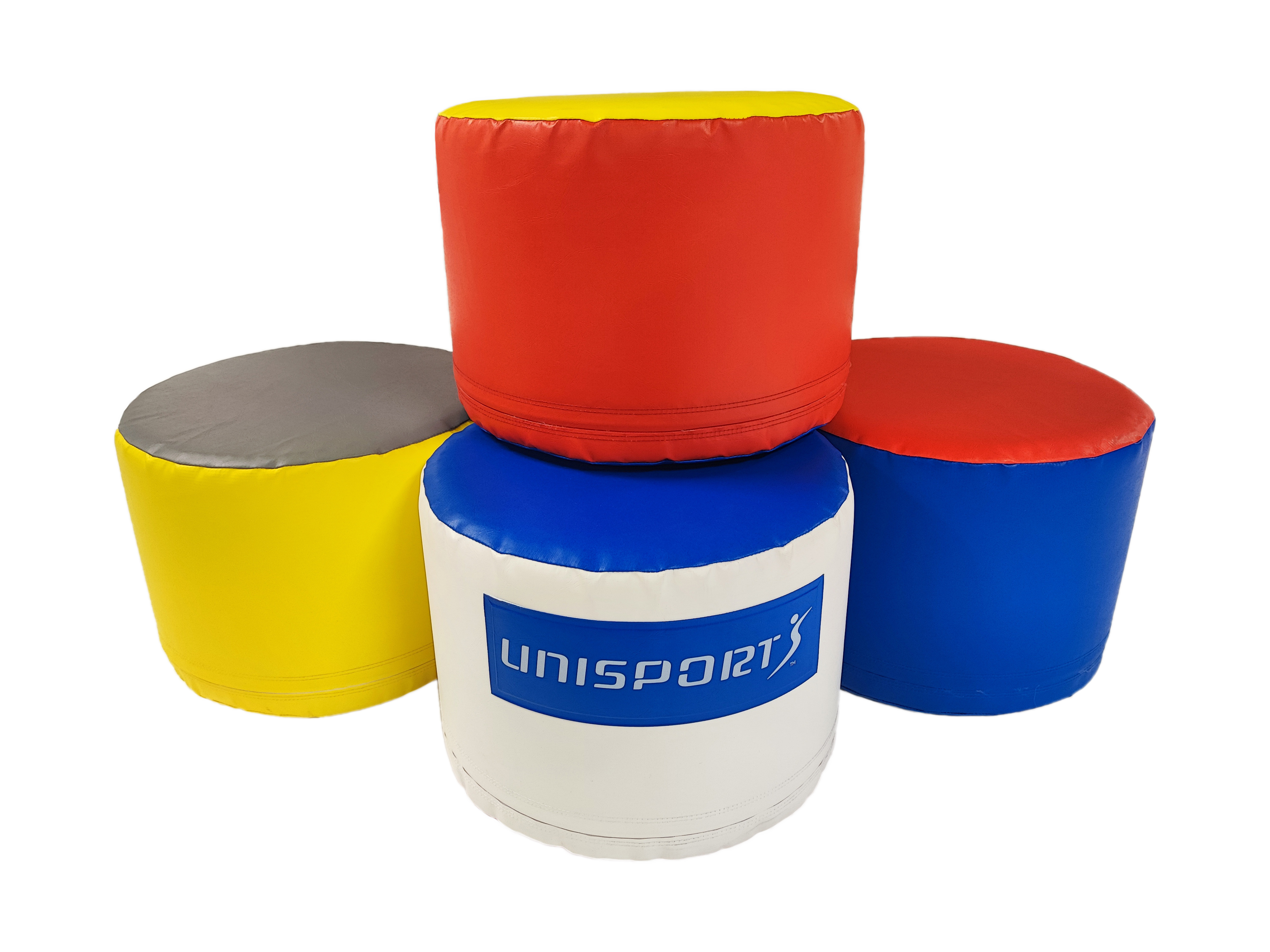 Halkaisija 40 cm. Korkeus 30 cm. Pehmeä istuttava jakkara päiväkotikäyttöön.