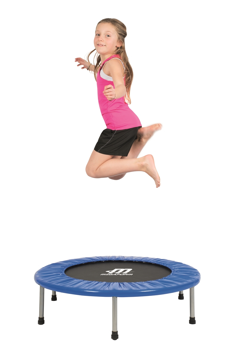Pyöreä minitrampoliini suojareunalla sopii erinomaisesti kuntoiluun. Vankka teräsrunko ja galvanoidut teräsjouset.