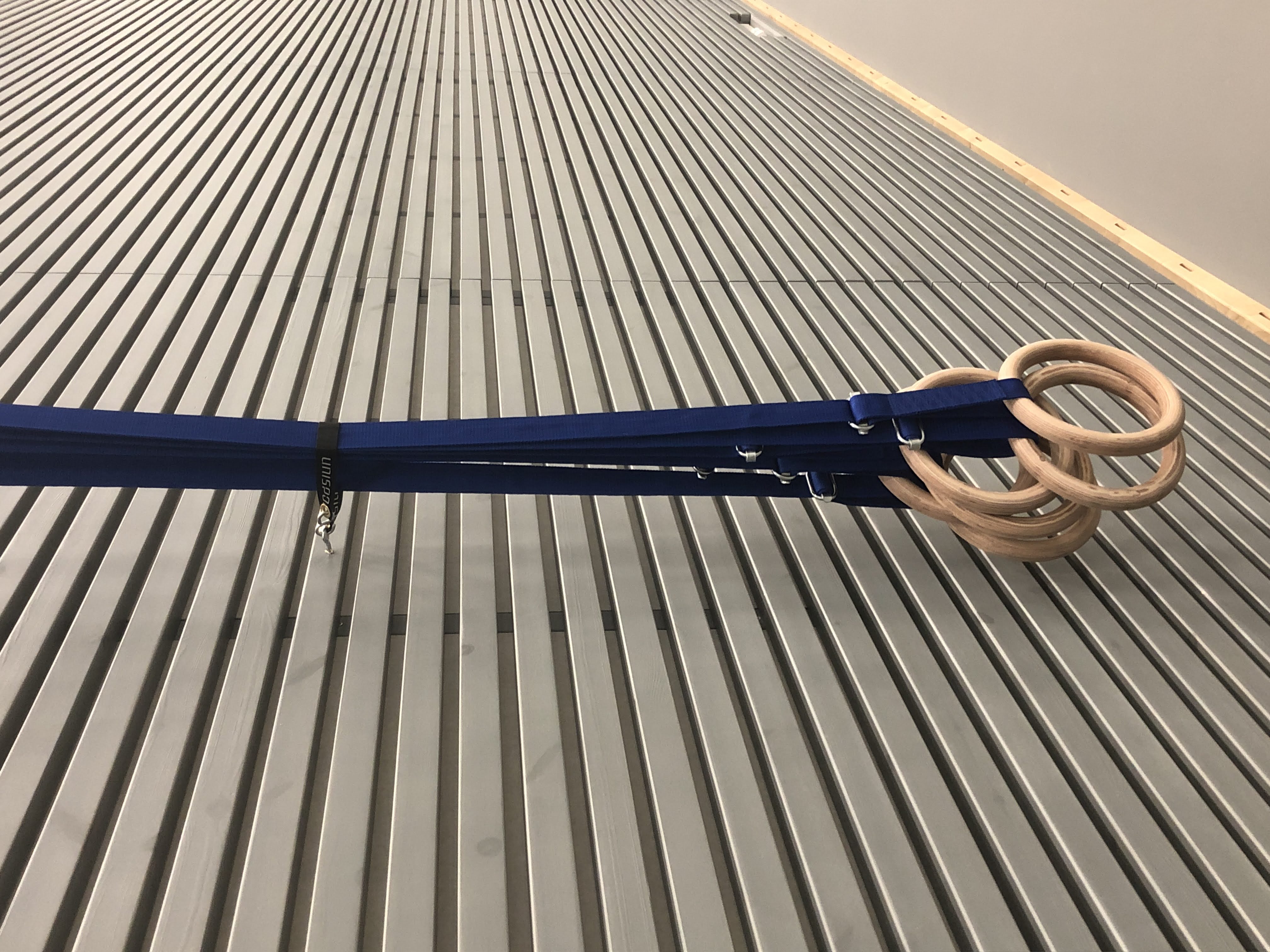 Kankaiset hihnat voimistelurenkaille. Sisältää soljen pituuden säätämistä varten sekä teräskolmion kattokiinnitykseen. Myydään pareittain. Voimistelurenkaat 120327 ja 120328 myydään erikseen.