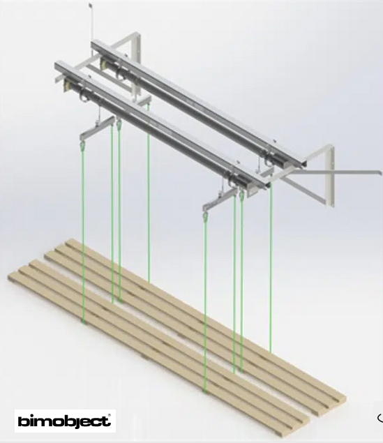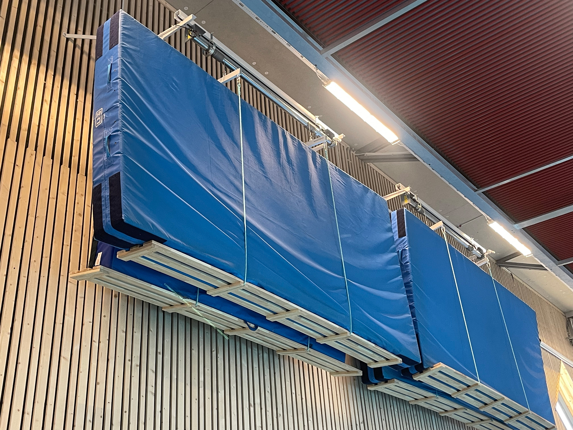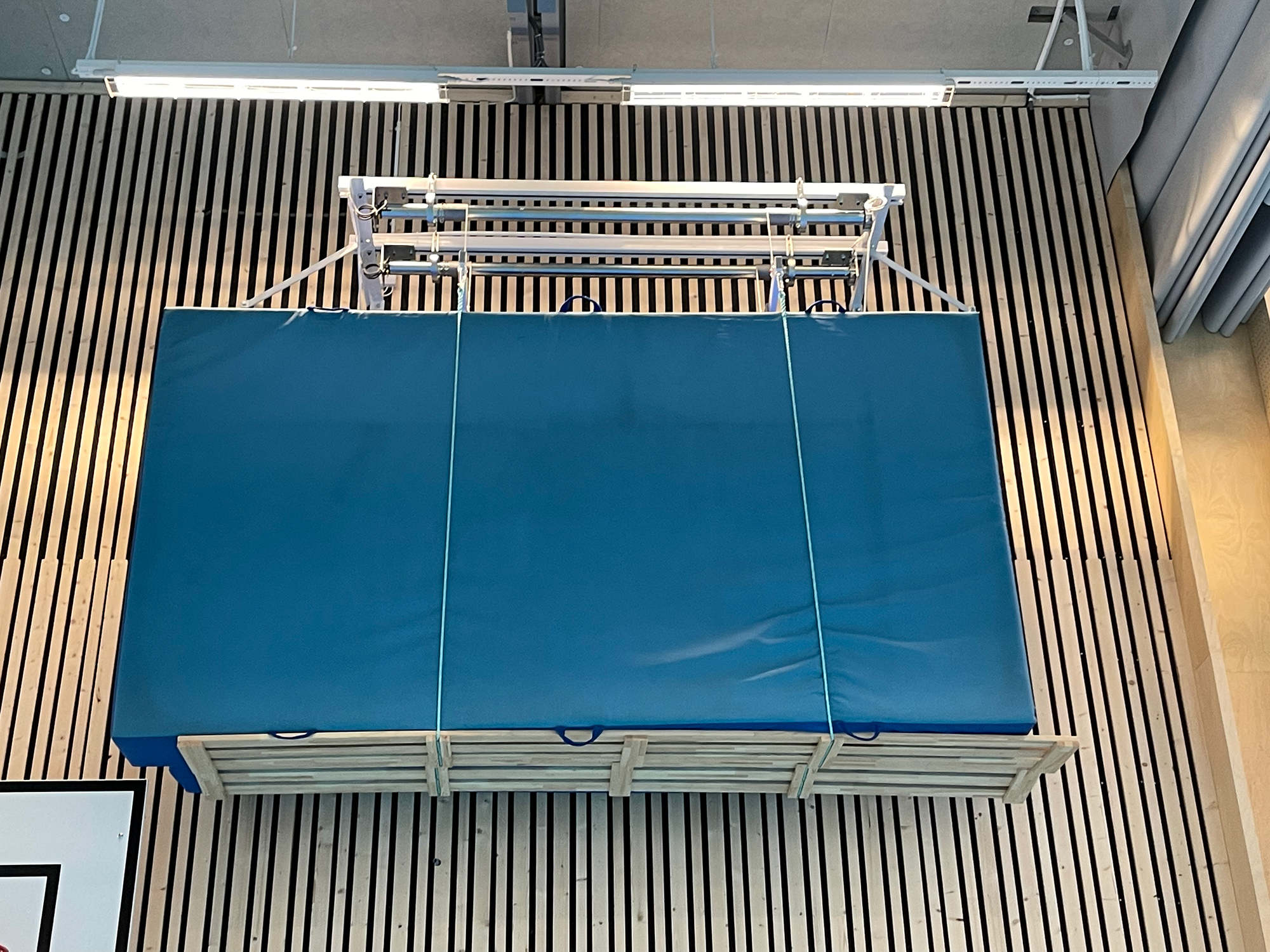 Täydellinen sarja kahden alastulopatjan nostamiseen ja laskemiseen. Sisältää 230 voltin moottorin, lisämoottorisuojan, erikoiskarabiinit ruuvilukoilla, vahvistetut seinäkiinnikkeet ja turvaluokitellut vaijerit. CE-merkitty. Seinäkiinnikkeet ja kiinnityspalkki maalattu valkoiseksi, RAL 9016. Saatavilla myös yhden patjan mallina (401650). Ei sisällä avainkytkintä 607594.