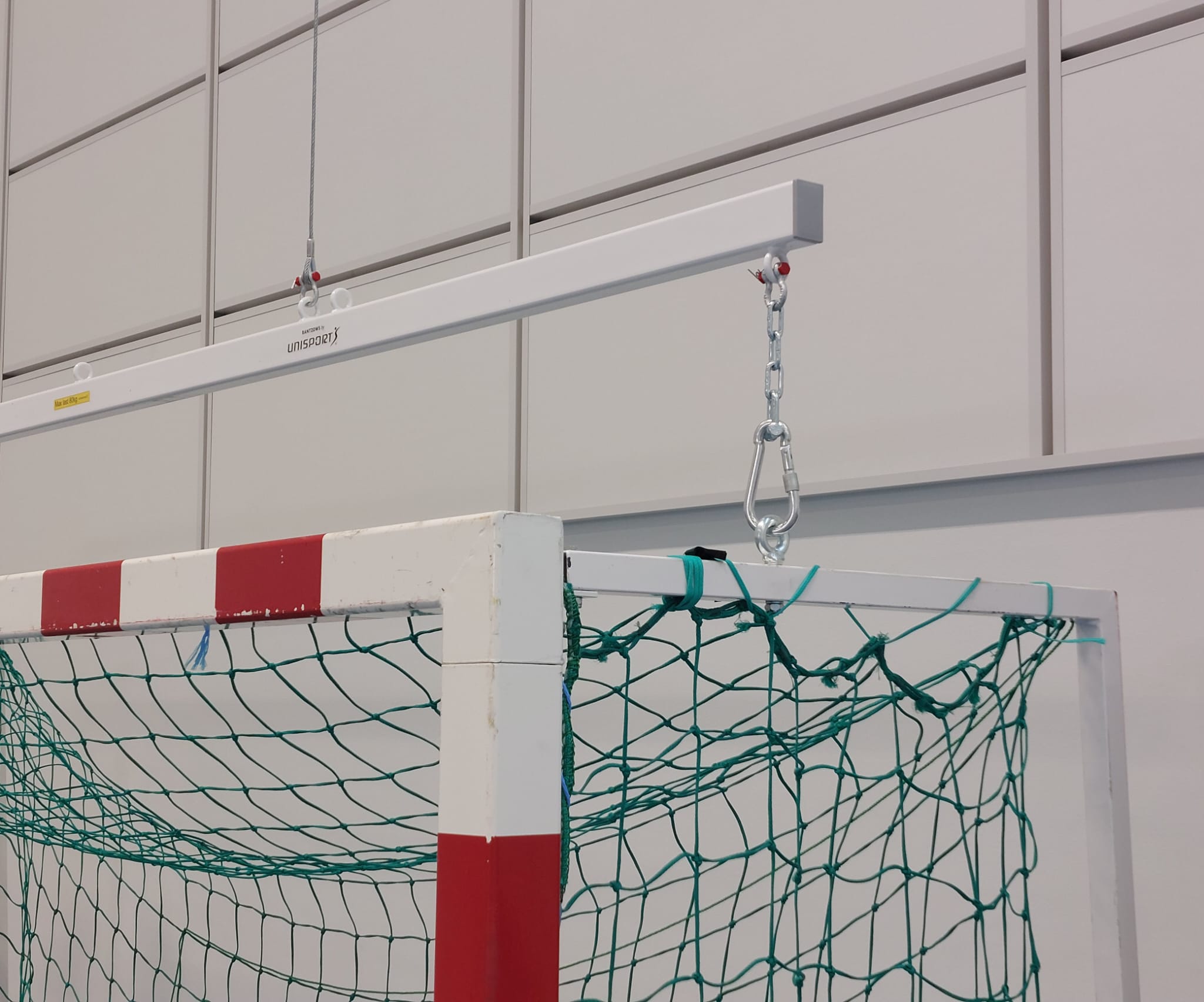 Seinälle asennettava säilytyshissi yhdelle käsipallo-/futsalmaalille. Sisältää seinäkonsolit, putkimoottorin, nostopalkin sekä -vaijerit. Avainkytkin (607594) myydään erikseen. Seinäkiinnitysmahdollisuus selvitettävä. Suositeltava max. asennuskorkeus 8 m.