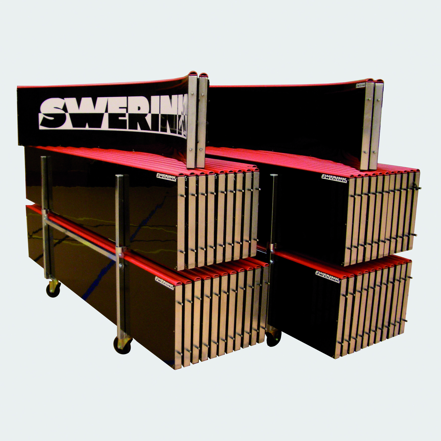 IFF-hyväksytty salibandykaukalo. Koko 40 x 20 x 0,5 m. ABS-muovia, pehmeä muovinen ylälista. Sisältää 2 kuljetus- ja säilytysvaunua.