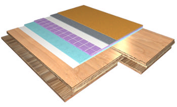 Muovipäällysteinen sandwich-rakenteinen urheilulattia |