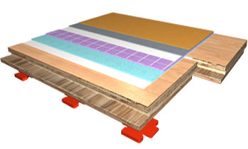 Muovipäällysteinen sandwich-rakenteinen urheilulattia |