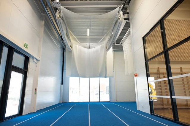 Unisport har levert en komplett løsning med sportsparkett, løpebaner, skillevegger, turnutstyr, kastnett og annet idrettsutstyr – et helhetlig leveransekonsept som gir funksjonalitet, kvalitet og fleksibilitet i alle detaljer.