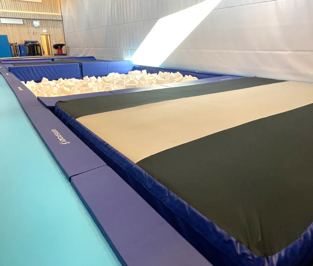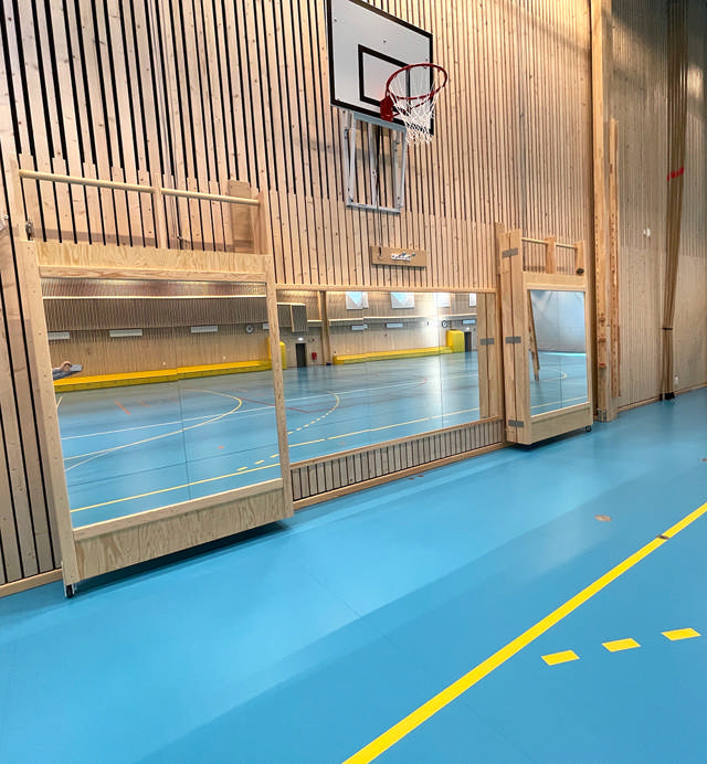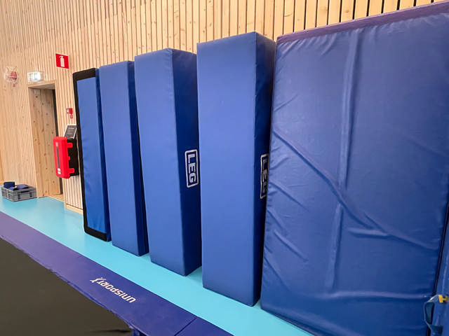 - Tumblinggolv (upphissat i taket i den fullstora sporthallen)