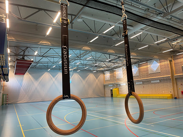 - Diverse sporthallsinredning (ribbstolar, bomsystem, romerska ringar, matthissar, resultatanläggning etc)