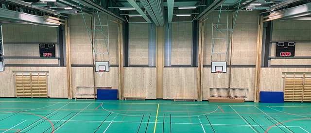 Eleverna på Söndrebaljshallen i Hjärnarp har fått en fantastiskt fin idrottshall. Vi på Unisport tycker det är ett extra roligt projekt med tanke på att hallen bara ligger ett par kilometer från vår fabrik, där allt trämaterial som finns i hallen har tillverkats.