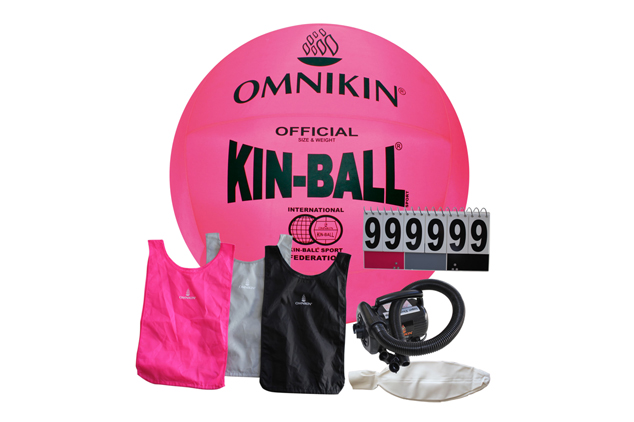 Komplett spille sett for Kin-ball med 1 Kin-ball, 1 kompressorpumpe, 12 spillevester, 1 poengtavle og en ekstra innerblære til Kin-ball.