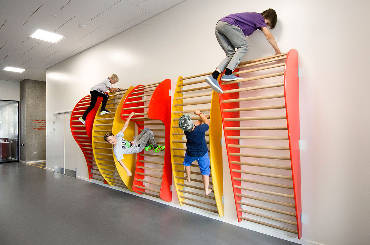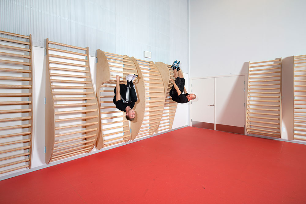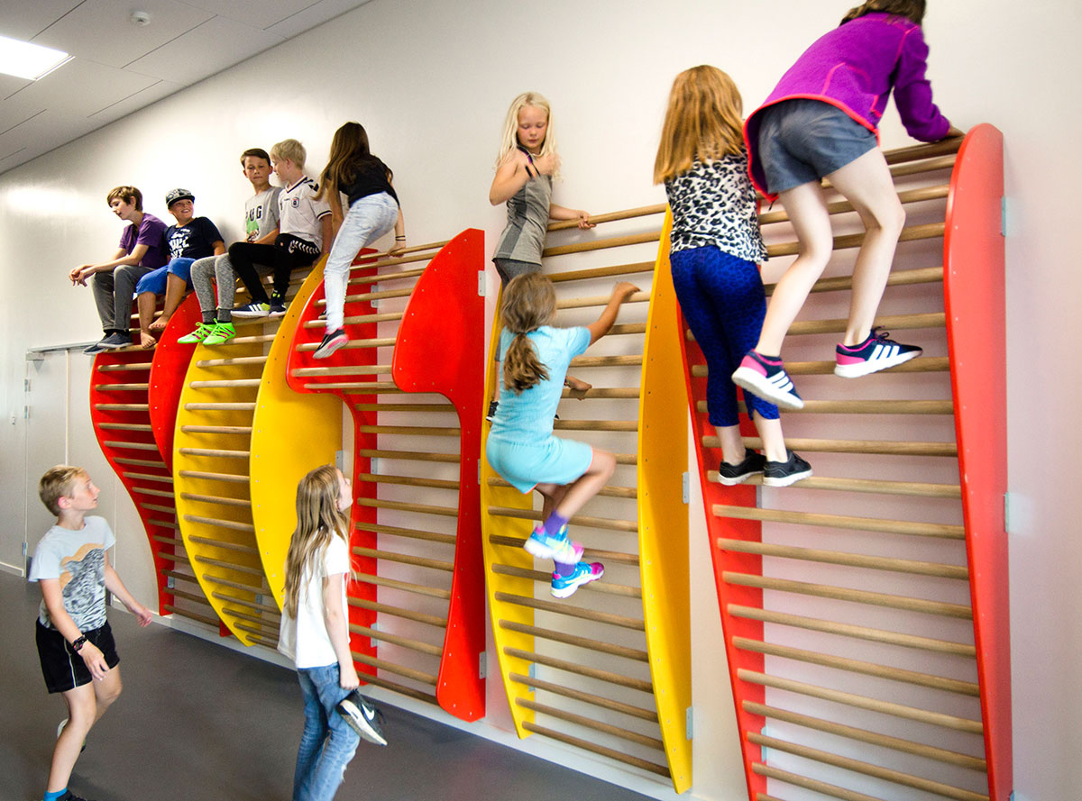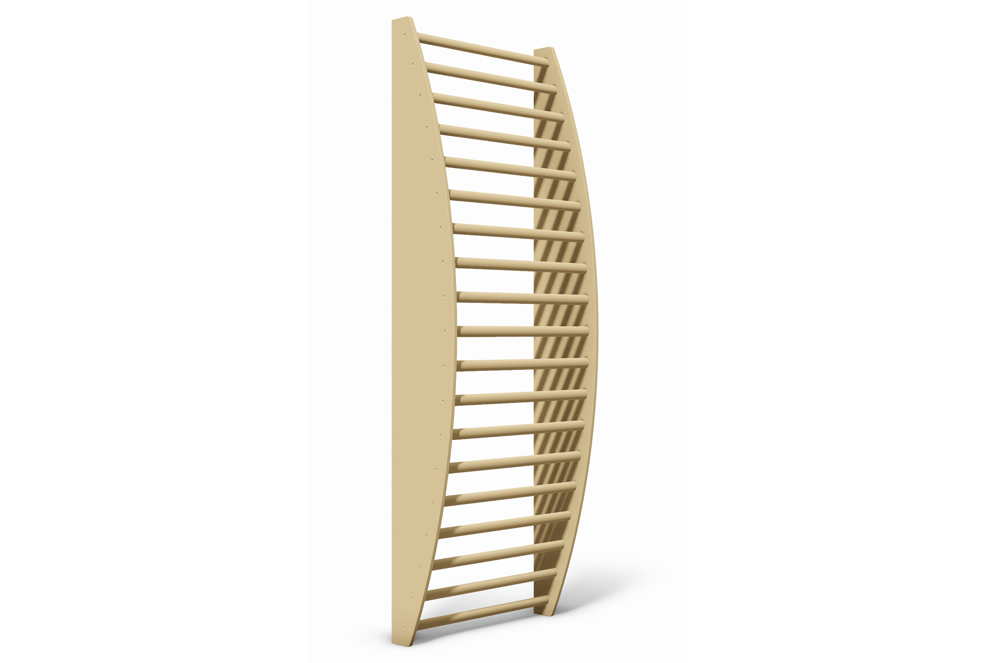 De klassiske ribbeveggene har fått en tvillingserie med ulike former som inspirerer til bevelgelse og gir motoriske utfordringer. Bare fantastien setter grenser for plassering og anvendelseområder. Bredde 80 cm. Høyde 240 cm.