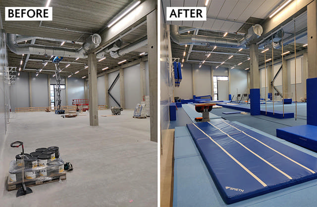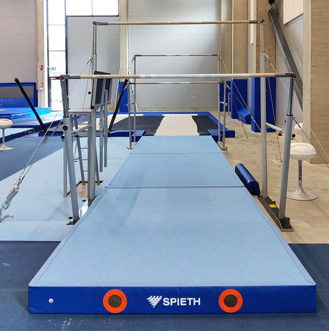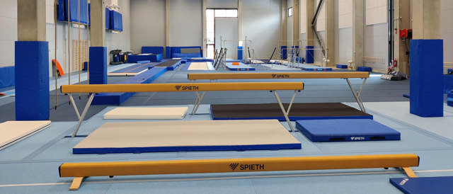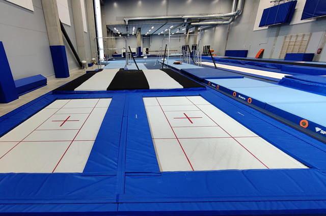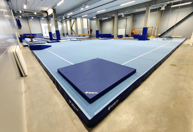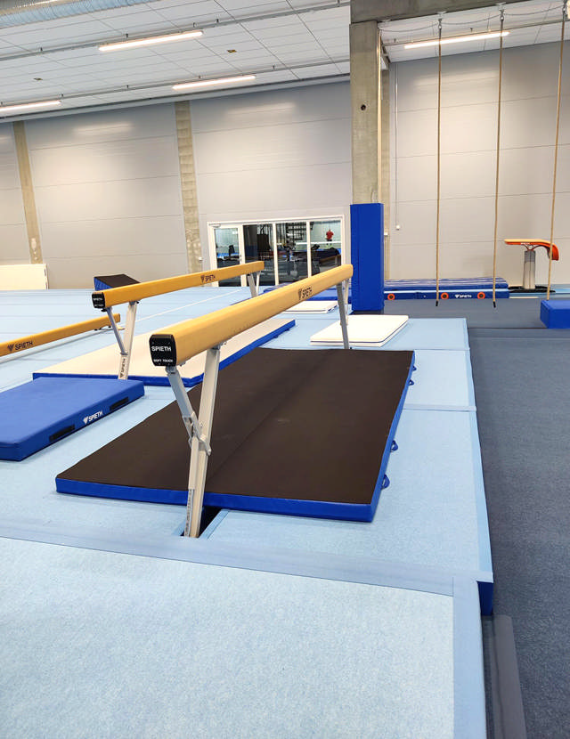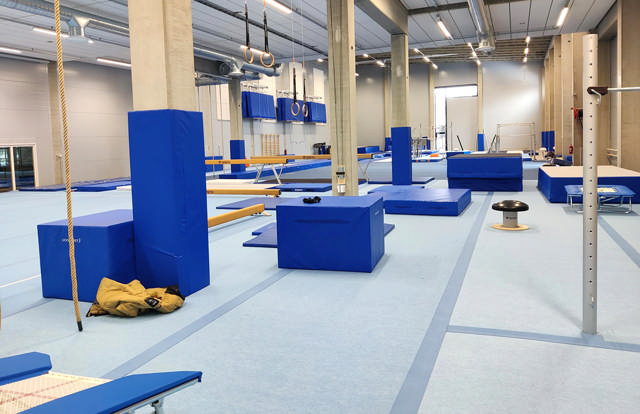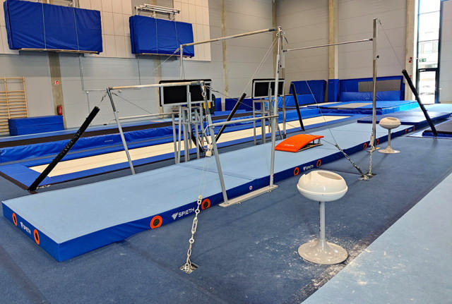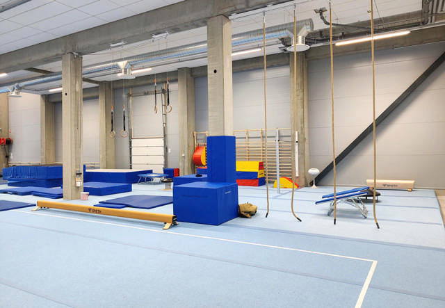 Hallen har komplett tävlingsutrustning för trupp- och artistisk gymnastik.Här finns tumblinggolv, stora landningsgropar och en hydrauliskt höjdjusterbar grop, vilket möjliggör säker daglig träning för alla typer av användare och grupper. Förutom Unisports egna produkter och lösningar installerades också högkvalitativ utrustning från Spieth.