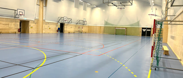 Unisport har installerat sportgolv och sporthallsinredning i tälthallarna på Bollhusets parkering i Lund