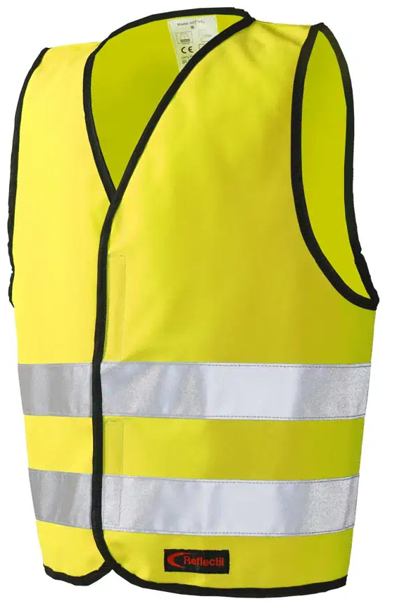 Västen är tillverkad i lätt polyester och utrustad med tydliga reflexband runt om för ökad säkerhet i mörker och skymning.