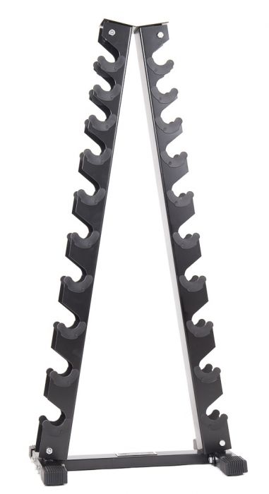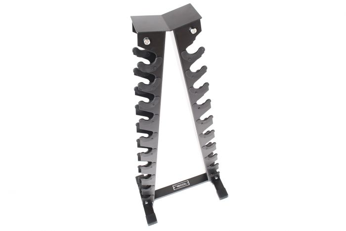 Ställ för upp till 10 par hexagonhantlar. Ett smidigt och platsbesparande hantelställ som passar hantlar 1-10 kg i hexagonvariant med standardiserade mått, så som våra hexagonhantlar. Enkelt att montera och mycket stilrent. Svart.