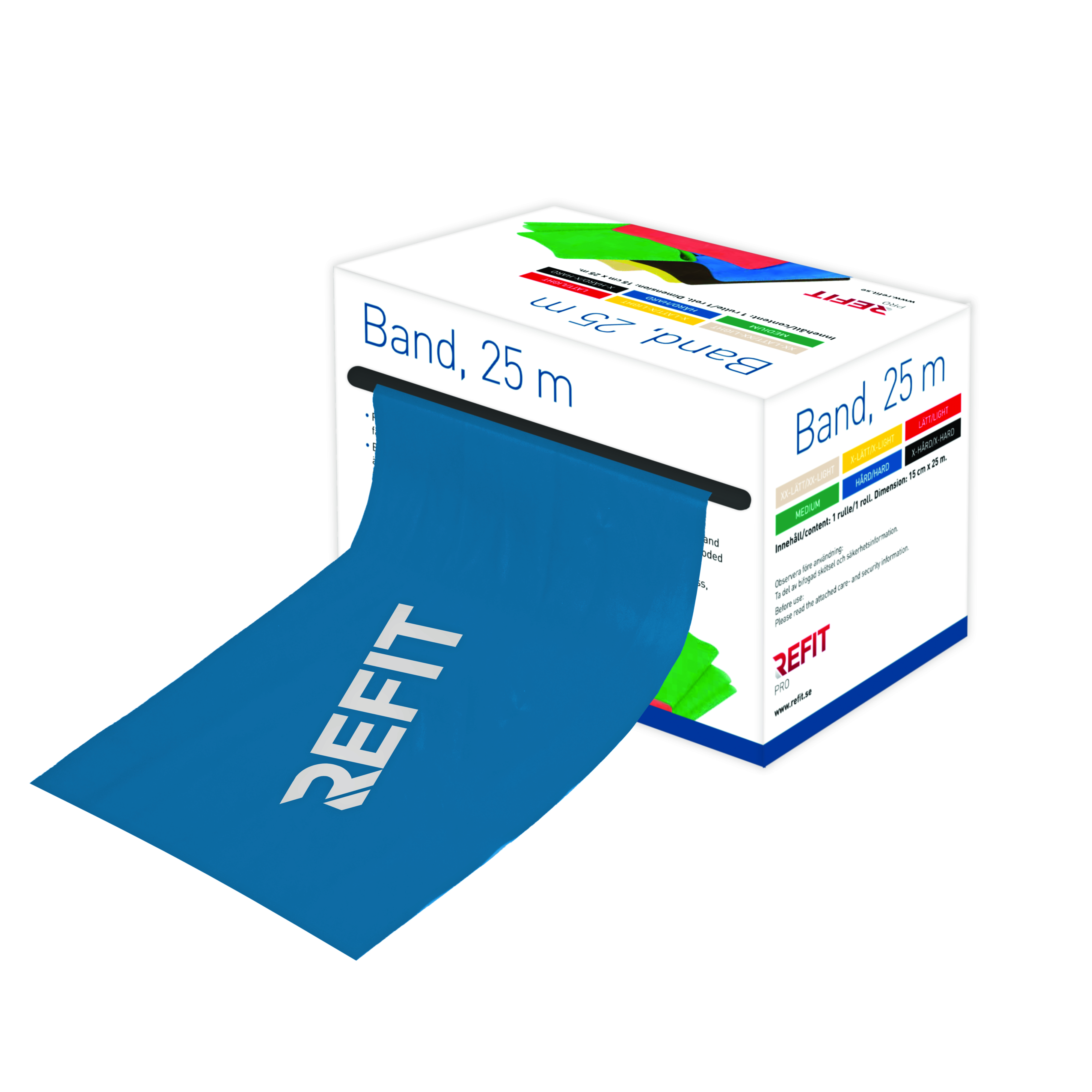 Gör din träning smartare med Refitband – det mångsidiga träningsredskapet som hjälper dig att stärka kroppen, öka rörligheten och förbättra muskeluthålligheten, oavsett var du befinner dig. Med Refitband får du en komplett träningslösning som är lika effektiv på gymmet som hemma eller på resan. 15 cm breda på rulle om 25 meter. Finns med fler olika motståndsnivåer.
