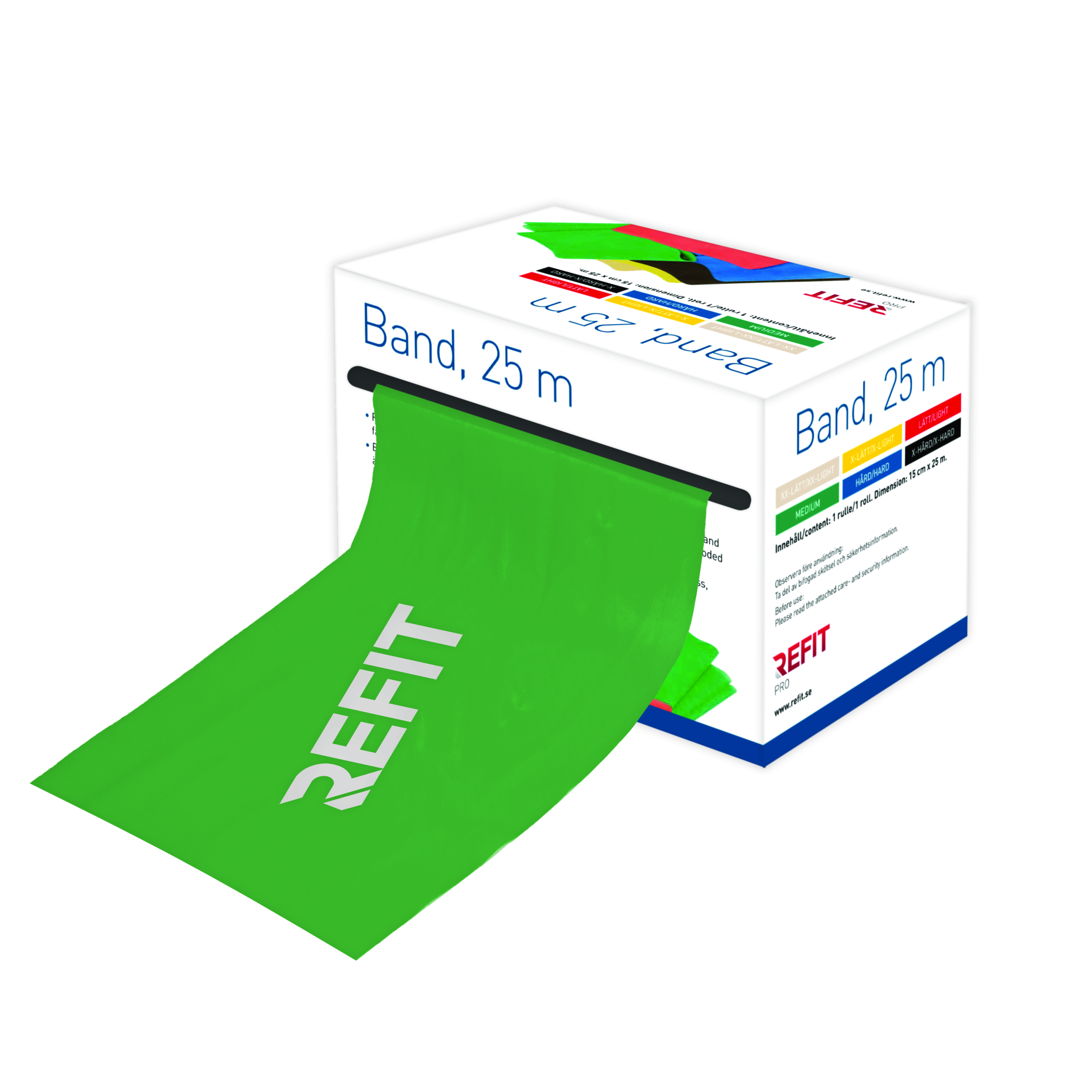 Gör din träning smartare med Refitband – det mångsidiga träningsredskapet som hjälper dig att stärka kroppen, öka rörligheten och förbättra muskeluthålligheten, oavsett var du befinner dig. Med Refitband får du en komplett träningslösning som är lika effektiv på gymmet som hemma eller på resan. 15 cm breda på rulle om 25 meter. Finns med fler olika motståndsnivåer.