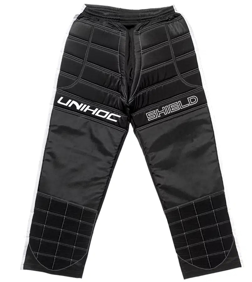 SHIELD är en del av Unihocs BASIC-kollektion för målvakter. Byxorna är vadderade framtill och över höfterna för extra skydd, samt förstärkta över knäna för ökad slitstyrka. Midjan är justerbar för en bekväm och säker passform.
