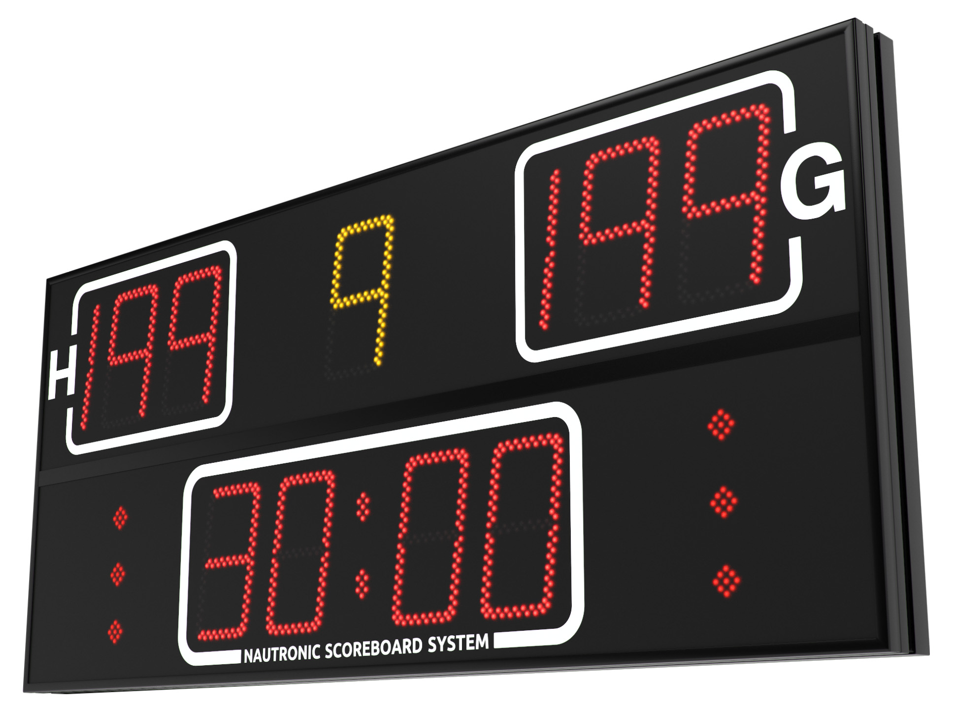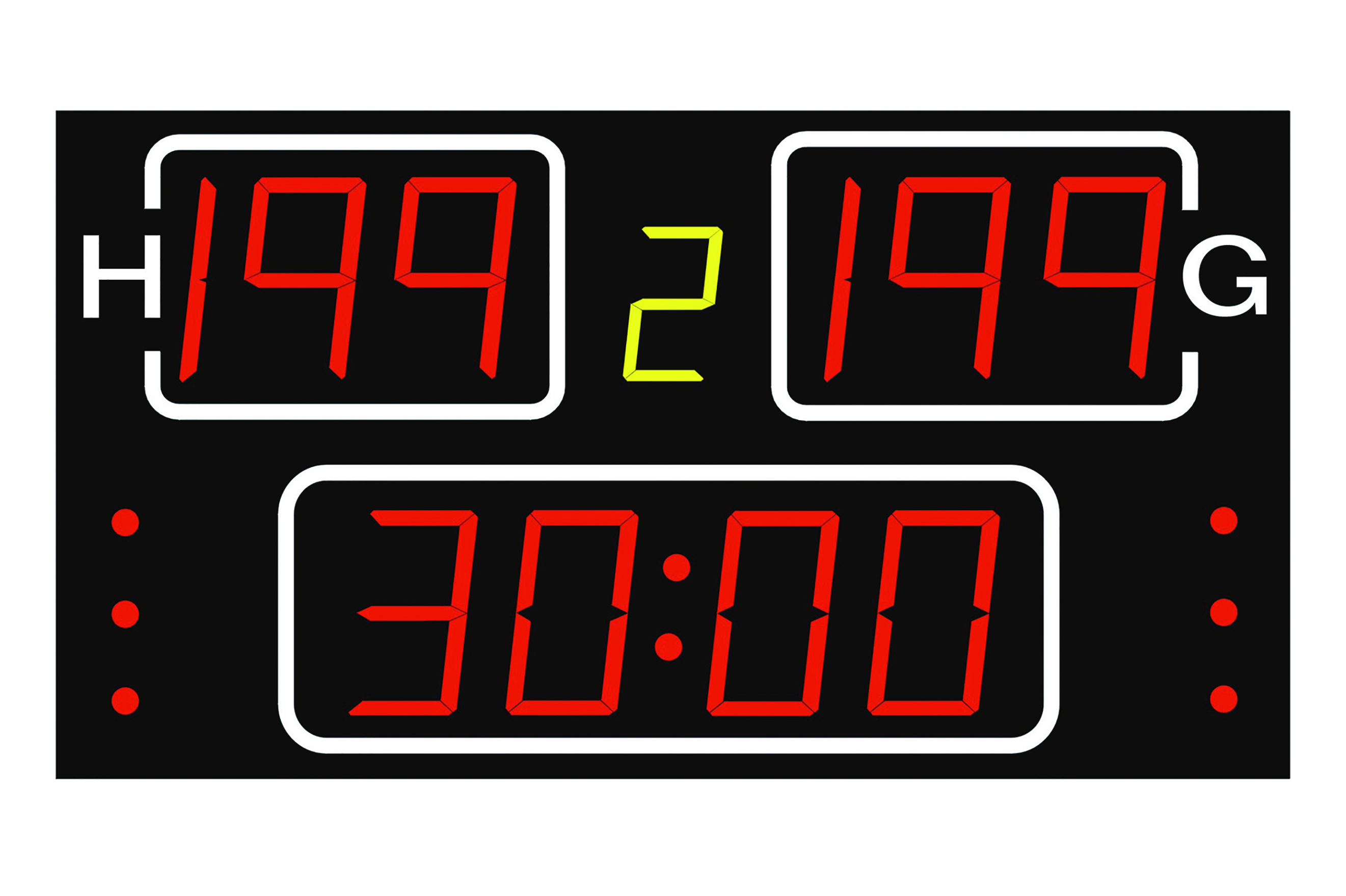 Resultatanläggning för bland annat fotboll, handboll, basket, tennis, volleyboll och innebandy. Resultattavlan styrs via en trådlös kontrollpanel med meny och pekfärgskärm. (Kontrollpanelen ingår). Visar klockan när den inte används till match.