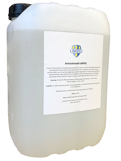 Limpios antistatmedel har antistatiska egenskaper som bl a ger en passiviserande effekt på granulatet i konstgräsplaner vilket medför att granulatet stannar kvar i konstgräset. Även effektivt i andra utomhusmiljöer, som t ex idrottsanläggningar, spontananläggningar osv. Kontinuerlig användning av antistatmedel ger längre hållbarhet och säkerställer en god prestanda på längre sikt. Med goda egenskaper att även tvätta bort påväxt samt ge en djuprengörande effekt på alla sorters ytor. Tillverkad i Sverige. Volym: 10 liter. Artikelnr 921150.