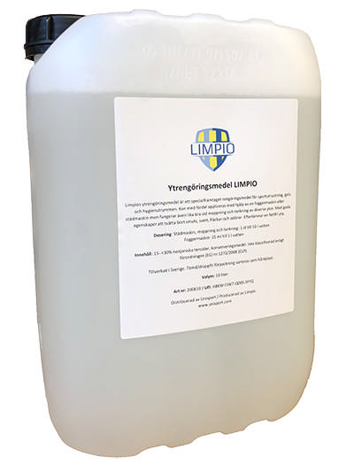 Mycket snabbverkande produkt som används för att eliminera bakterier. Alkoholfri och kliniskt testad antibakteriell produkt som används för desinfektion av allehanda vattentåliga ytor. Tar bort mer än 99,9 % av alla bakterier, bland annat E.coli, Staphylococcus aureus, Pseudomonas aeruginosa. Effektiv mot Corona- och Norovirus. Efterlämnar en fettfri yta. Tillverkad i Sverige. Volym: 10 liter. Artikelnr 921147.