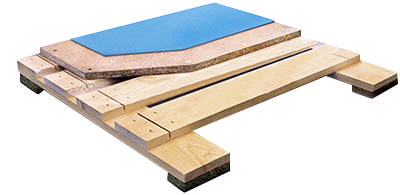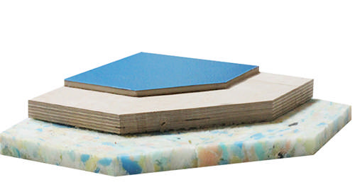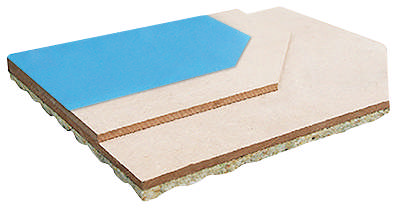 En golvkonstruktion i plywood med 18 mm skiva och dubbel spont för optimal stabilitet och resultat. Skivorna installeras på en 15 mm specialfoam som bidrar till komfort och dämpning. Den totala bygghöjden är endast 42 mm.