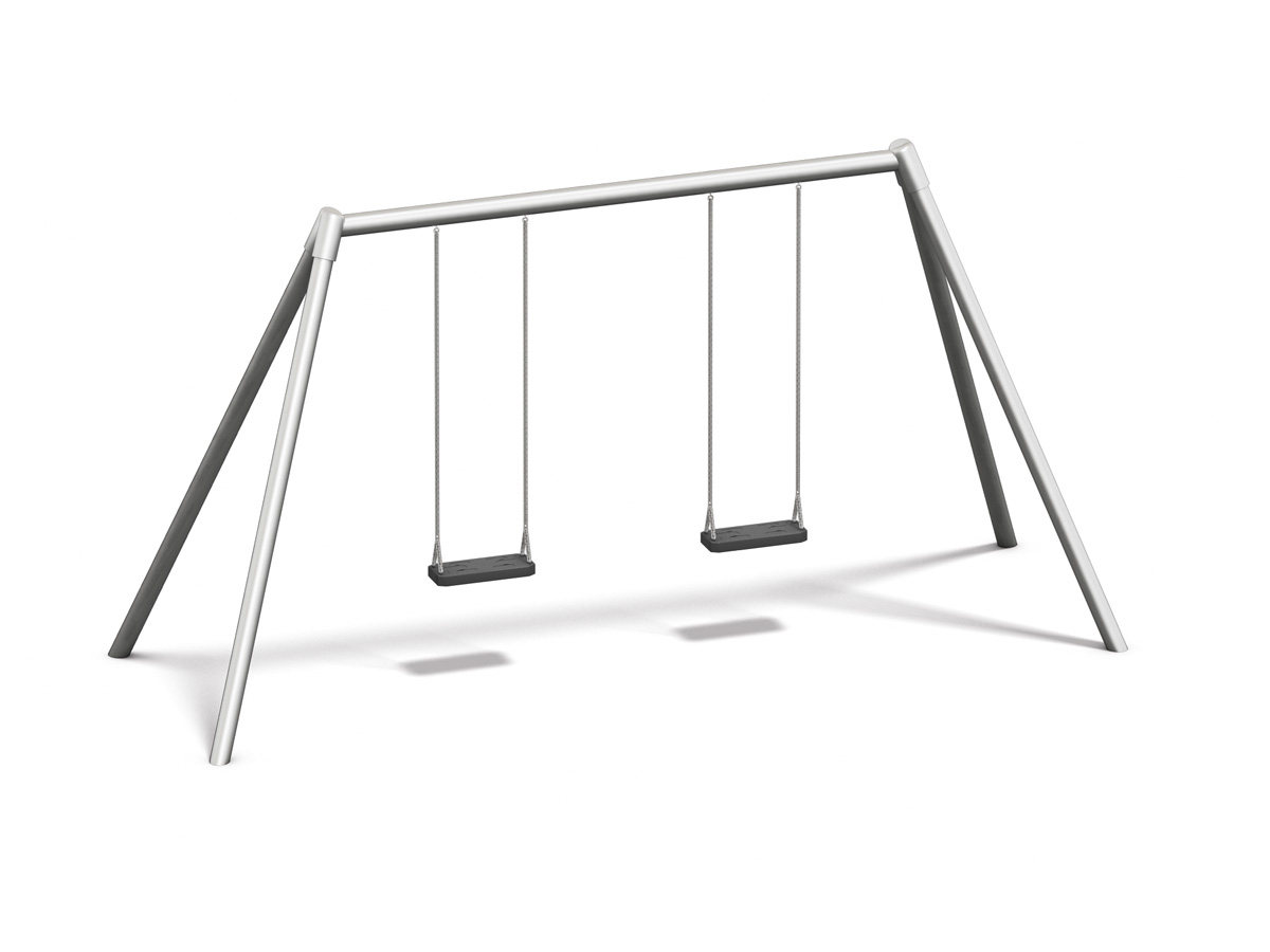 En gunga kompletterar varje lekplats. Att gunga har i århundraden varit ett sätt att testa sig själv, att koordinera kroppsrörelser men också att slappna av och skapa en kittlande känsla i magen. Material: Stolpe: metall Ø 89 mm (galvaniserad), huvudbalk: metall Ø 108 mm (galvaniserad), rostfria stålfogar, gummibelagd gungsits.