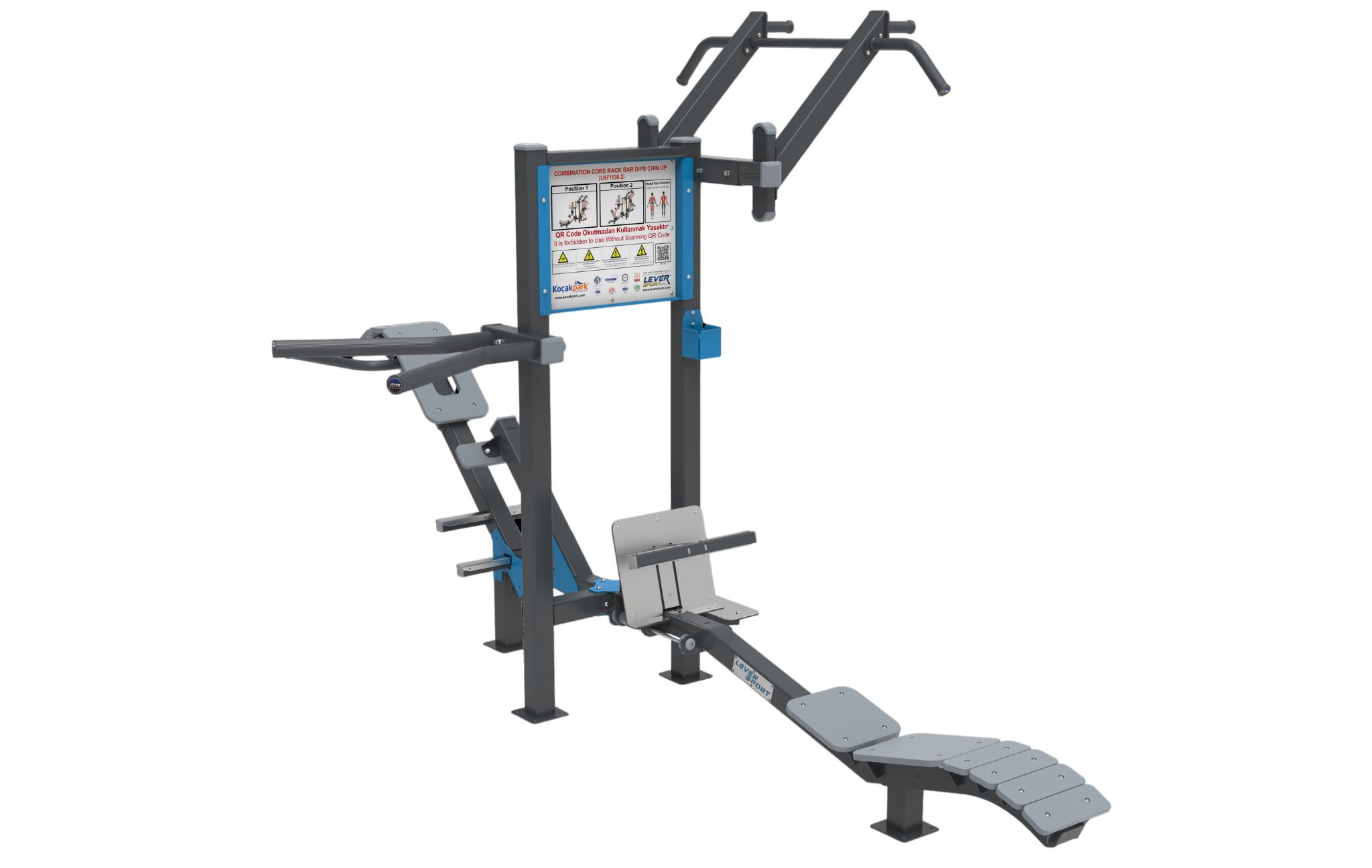 Kombinerad ställning för dips och bålträning som ger effektiv träning av överkropp och core i ett och samma redskap. Perfekt för utegym i parker, skolor och bostadsområden. Robust konstruktion anpassad för utomhusbruk och hög belastning, vilket gör den till ett hållbart och yteffektivt val för alla träningsnivåer.